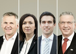 Der neue Vorstand der Deutschen Poroton (v. l. n .r.): Johannes Edmüller, Vorstandsvorsitzender, Heidrun Keul, stv. Vorstandsmitglied, Jürgen Habenbacher, stv. Vorstandsmitglied, Clemens Kuhlemann, Geschäftsführer